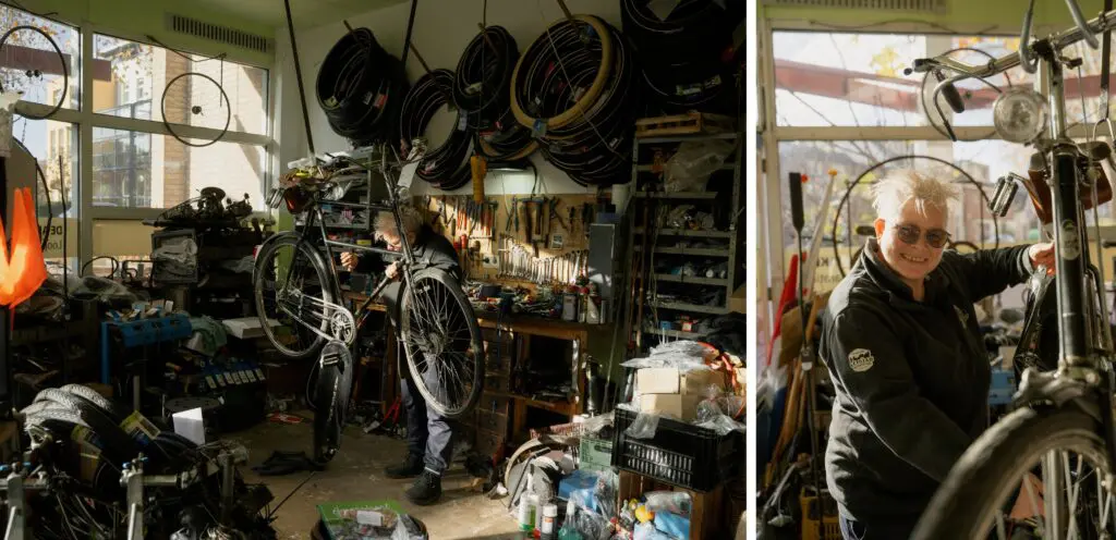 De drijvende kracht van Janke is wat haar anders maakt dan andere fietsenmakers: het ambacht, het écht repareren. “Ik herstel, maak alles zelf,” vertelt ze, “daar zijn er maar een paar anderen van in de stad.”