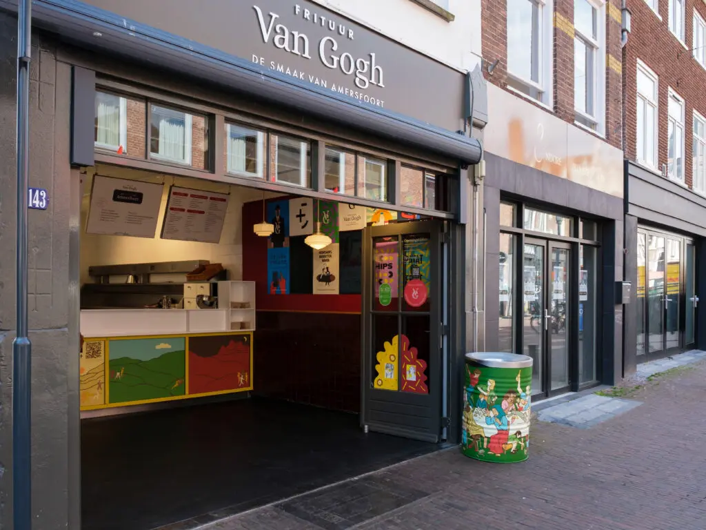 Bij Frituur Van Gogh zit de verbondenheid met kunst niet alleen in de naam, maar ook in wat ze doen. Toen het 25-jarig jubileum in zicht kwam, wilde eigenaar Arn Zuyderduin iets speciaals doen waar de stad en haar makers bij betrokken werden. Zo ontstond Kunst met Smaak, een initiatief waarin kunst en frituur op een verrassende manier samenkomen. In samenwerking met illustrator Tamara Boon kiezen ze ieder jaar in januari weer nieuwe jonge kunstenaars uit. Zo krijgen lokale makers in april een podium en wordt de creatieve scene in Amersfoort zichtbaar voor iedereen.